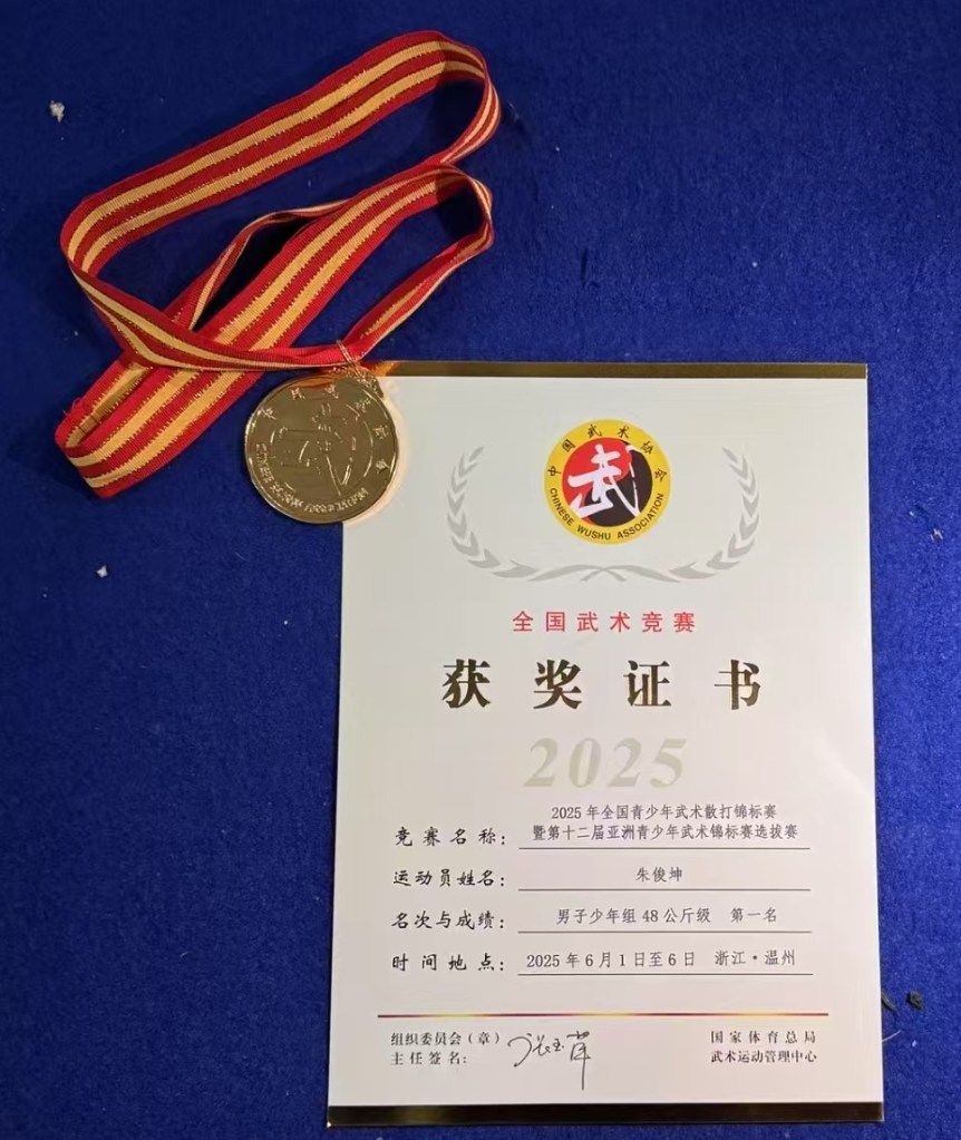 He won his first National Sanda Championships (Fuzhou) in 2004 and again in 2005 (67.5kg Cat).